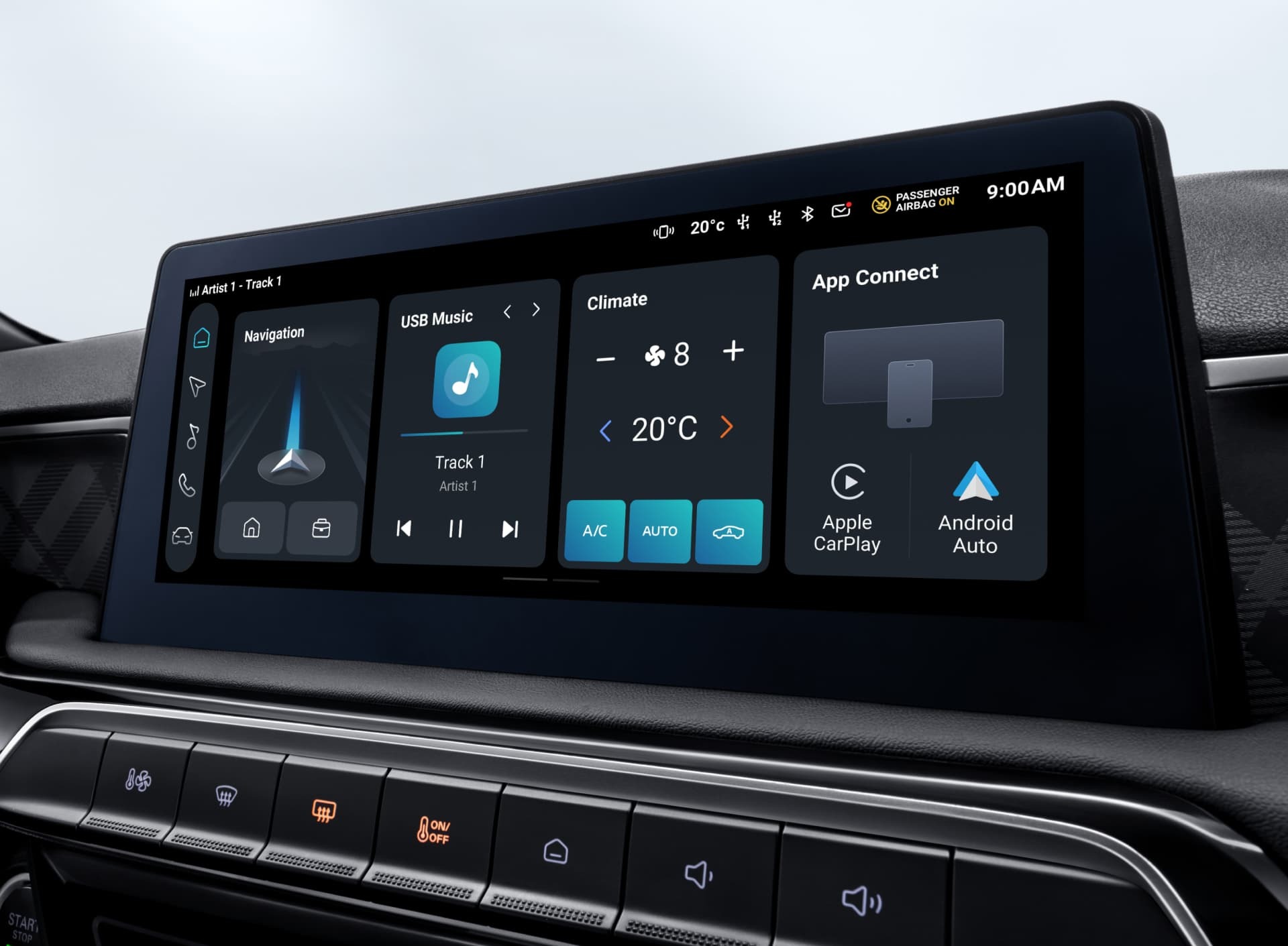 Από τη ρύθμιση του δορυφορικού σας πλοηγού μέχρι την επιλογή της αγαπημένης σας μελωδίας, αρκεί ένα γρήγορο πάτημα της οθόνης infotainment 10,25″. Η οθόνη HD και ο διαισθητικός σχεδιασμός της σημαίνουν ότι μπορείτε να επιλέγετε ό,τι χρειάζεστε ενώ οδηγείτε με ασφάλεια. Και είναι συμβατή με τη συσκευή σας iOS ή Android.