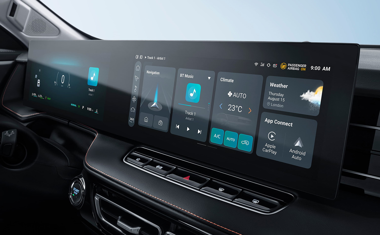 Η ψηφιακή εμπειρία έχει σχεδιαστεί προσεκτικά ώστε να είναι μοναδική Οι δύο οθόνες 12,3″ δίνουν στο εσωτερικό μια ξεχωριστή τεχνολογική εμφάνιση. Ο ψηφιακός πίνακας συνοψίζει τις βασικές πληροφορίες ακριβώς μπροστά από τον οδηγό.